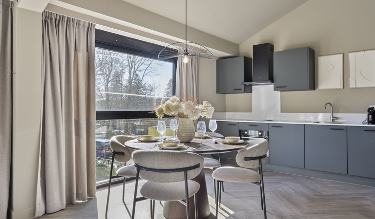 De appartementen zijn te vinden op vakantiepark Résidence Lage Vuursche, gelegen in het Utrechtse Lage Vuursche. Op dit duurzame vakantiepark staan rust, natuur en privacy centraal, wat u ook ervaart in en rondom de appartementen. De moderne vakantieappartementen bevinden zich in het hoofdgebouw, waar ook de receptie, een spa (opening eind oktober) en restaurant te vinden zijn. Zo heeft u alle faciliteiten tijdens uw verblijf binnen handbereik. Wilt u de omgeving ontdekken? Huur dan eenvoudig een (elektrische) fiets en ga eropuit!