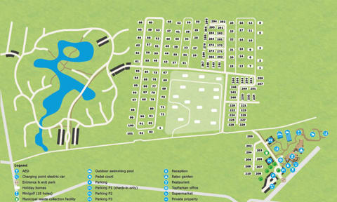 - Binnen- en buitenzwembaden, wellnesscentrum, restaurant, midgetgolfbaan, sportvelden, winkel en meer!